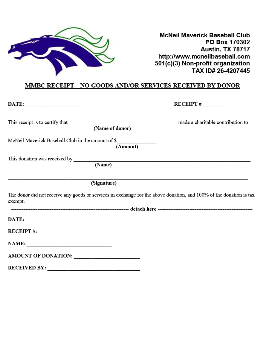 Sample of Printable Donation Receipt Template